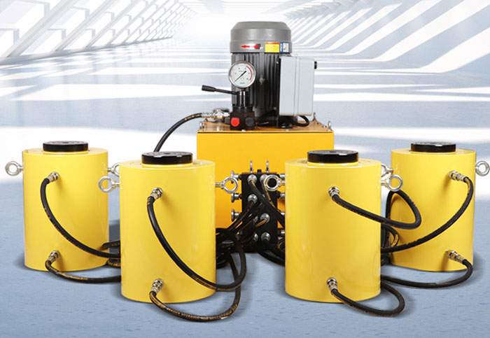 本公司生產(chǎn)的電動同步千斤頂,設(shè)計有安全保壓裝置,內(nèi)置卸壓閥防止過載,以保護千斤頂以利于安全操作。并設(shè)計四組截止閥,可隨時控制千斤頂同步升與降,該裝置的連接,采用的是高壓膠管和螺紋接頭連接,具有使用快捷,并克服快速傳統(tǒng)接頭漏油缺點主要用于電力、建筑、機械制造、礦山、鐵路橋梁、造船等多種行業(yè)的設(shè)備安裝起頂拆卸作業(yè)。